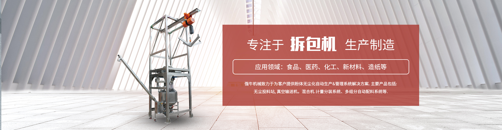 說到噸袋拆包機,大家都已經不再陌生,對于各行各業的原料拆包投料,起到了至關重要的作用。為了更好的解決噸袋拆包機,以及大袋拆包機在拆包的過程中大量粉塵飛揚對環境所造成的污染影響,為了進一步做到環保無染,后邊可以直接配套無塵管道輸送設備,讓各個...